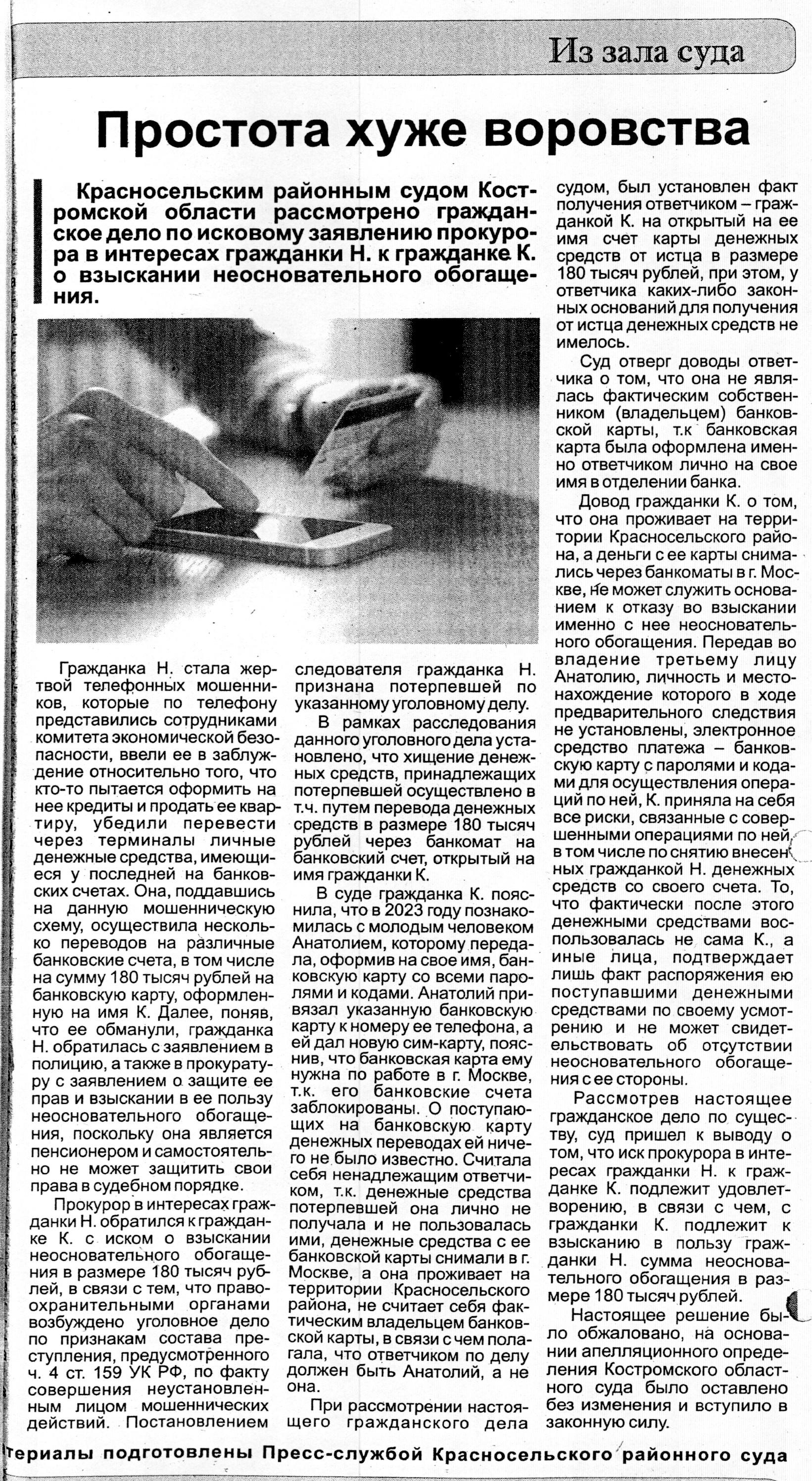 | В газете "Красное Приволжье" опубликована статья "Простота хуже воровсства" | версия для печати |