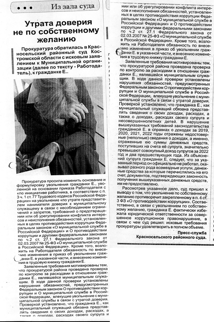 | В газете "Красное приволжье" опубликована статья "Утрата доверия не по собственному желанию" | версия для печати |